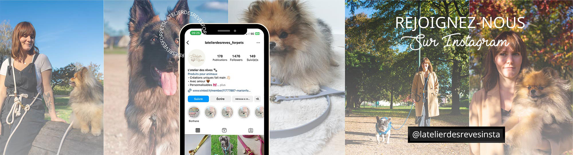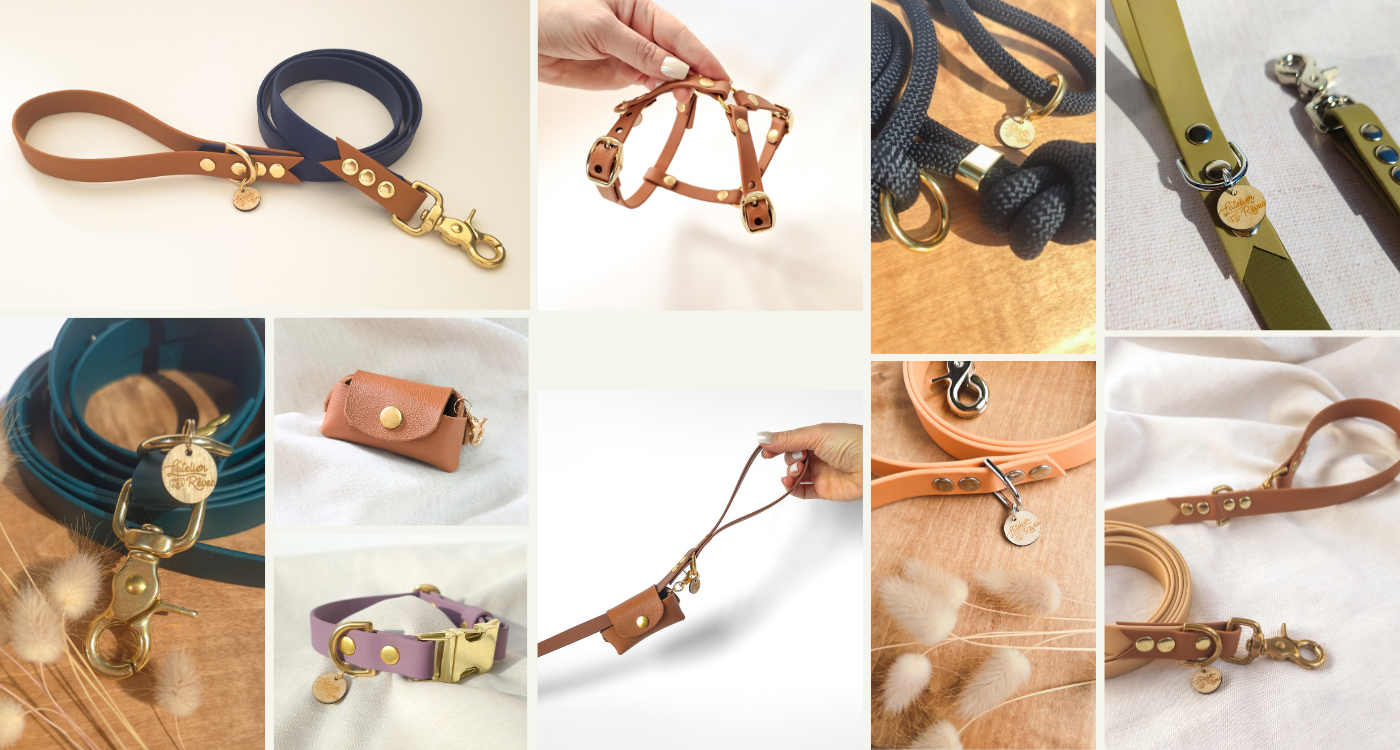 Passionnés par le bien-être animal, nous créons des accessoires uniques et personnalisés pour chiens. Notre atelier, né de l’amour pour notre compagnon à quatre pattes, conçoit des produits de haute, qualité esthétisme, confort et durabilité.