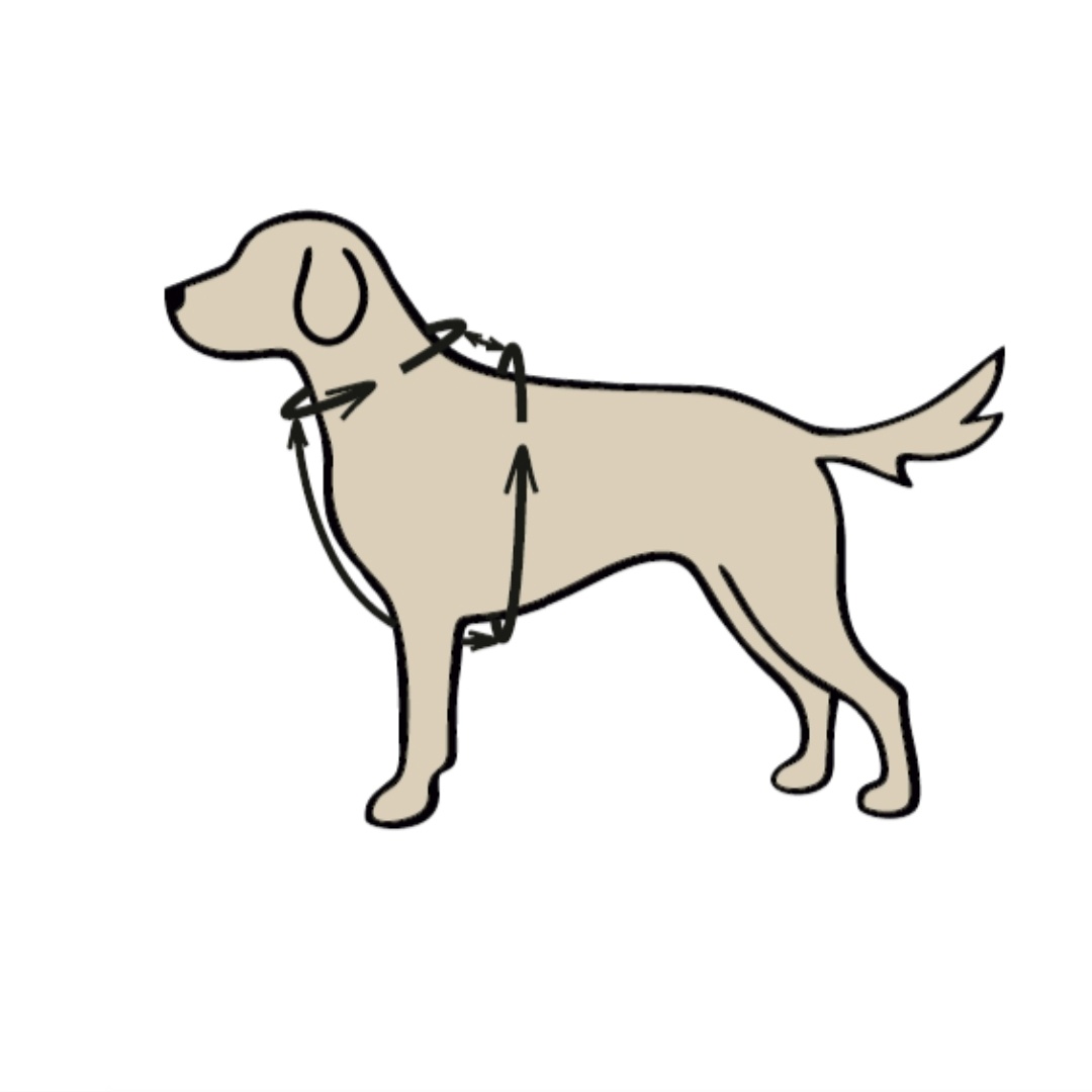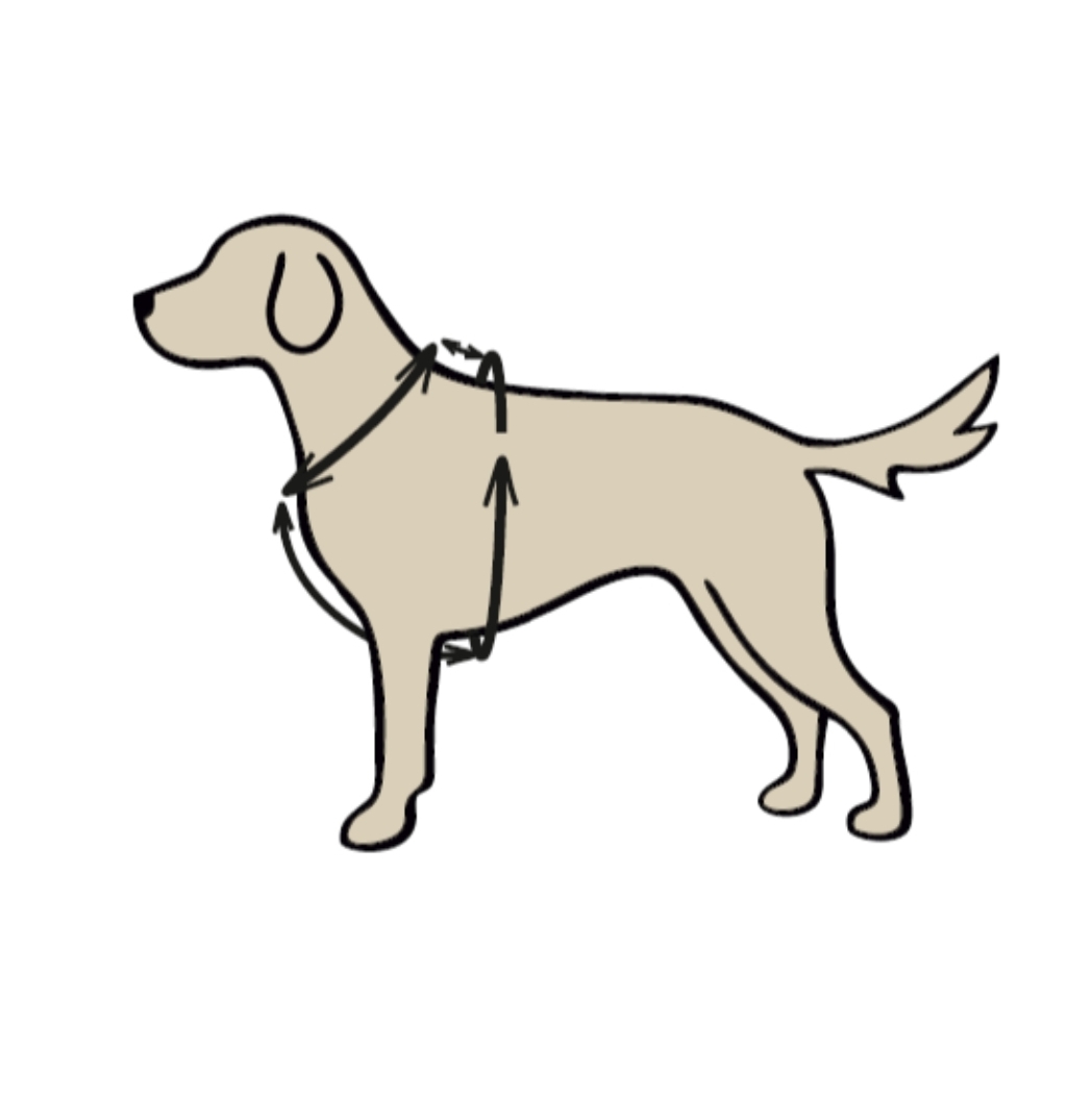 Pour garantir un confort et une liberté de mouvement parfaits à votre chien, suivez attentivement ces instructions pour la prise de mesures de votre harnais en Y sur-mesure.